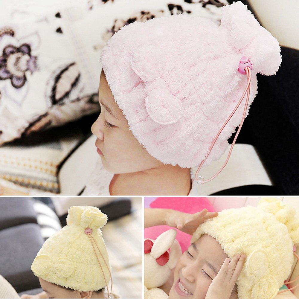 With a cute ribbon for children, it is a hair cap of water absorption fast drying material.