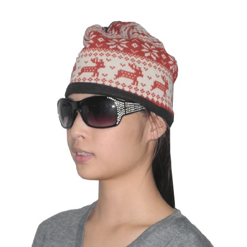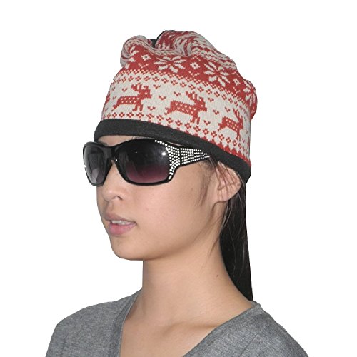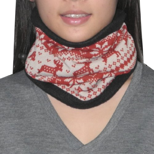 Womens Multi-Purpose Headgear / Hat / Neck Warmer / Scarf Red & Beige