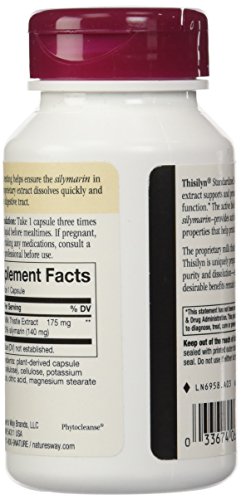 -. Binding : Health and Beauty -. Brand : Nature's Way -. EAN : 0602938288965 -. Feature : Thisilyn contains an active bioflavonoid complex called silymarin / A powerful antioxidant that exerts a protective effect against substances harmful to the liver and promotes healthy liver function / Milk thistle extract plus supportive detoxifiers to support normal liver function -. IsAdultProduct : 0 -. Label : Everready First Aid -. Manufacturer : Everready First Aid -. NumberOfItems : 1 -. PackageQuantity : 1 -. ProductGroup : Health and Beauty -. ProductTypeName : HEALTH_PERSONAL_CARE -. PublicationDate : 2016-02-09 -. Publisher : Everready First Aid -. ReleaseDate : 2016-02-06 -. Studio : Everready First Aid -. Title : Nature's Way Thisilyn Milk Thistle 100 Vcaps, 2 Count -. UPC : 602938288965