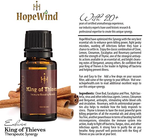 King Of Thieves Essential Oil Blend - 100% Pure, Therapeutic grade, Unique Organic Formula - Supports Immune System Health, kills germs, helps prevent cold and flu, Antibacterial - by HopeWind Health