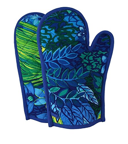 Shalinindia Printed Oven Mitt Set of 2 Quilted Cotton Lining Kitchen Cooking Gloves, Blue, 8 x12 Inch