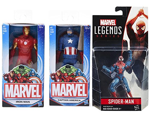 -. Title : Spider-Man Captain America & Iron Man Action Figure Pack Marvel Ultimate Legends Classic Costume Spidey + Super Hero 6" characters