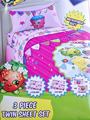 Studio : Jay Franco Sons Publisher : Jay Franco Sons Product Description . This 3 piece twin size sheet set includes a fitted sheet, flat sheet and standard size pillow case. Themed after the popular Shopkins characters with bright colors and logo design. Made with super soft microfiber material for comfort and durability. 0