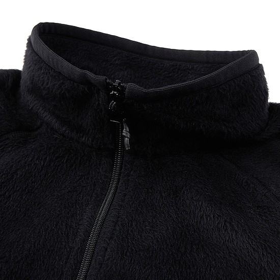- 부드러운 플리스 외관의 반 집업 스타일의 여성 자켓.