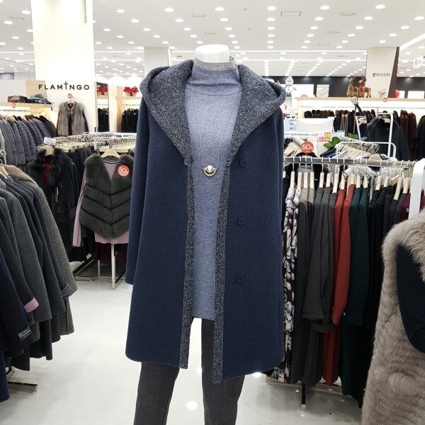 고급스런 베이비알파카(70%)와모혼방소재로 후드가있어 캐주얼한느낌을 주는 코트입니다.