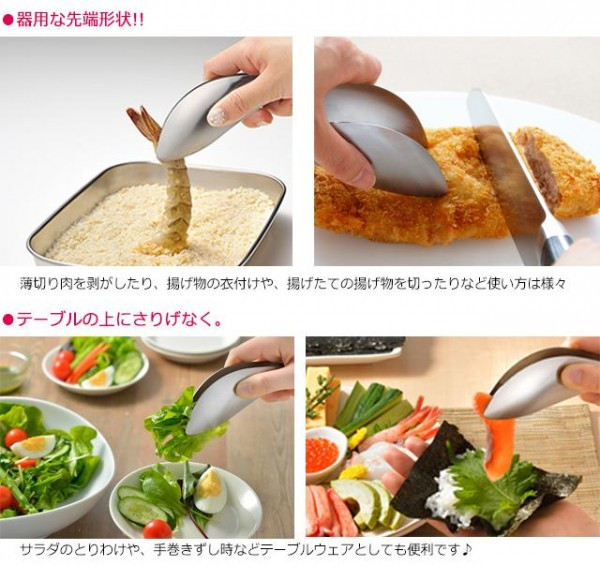 細かい作業がしやすい小さめのトング。やわらかなバネ性があり、自分の指のような感覚で自然に使えます。あつあつのとんかつや、においの強いにんにく、魚などにも触れずにお料理できます。 |