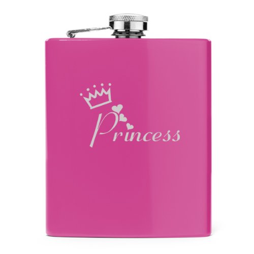 -. Title : Pink 7oz Stainless Steel Hip Flask FS310 Princess with Crown