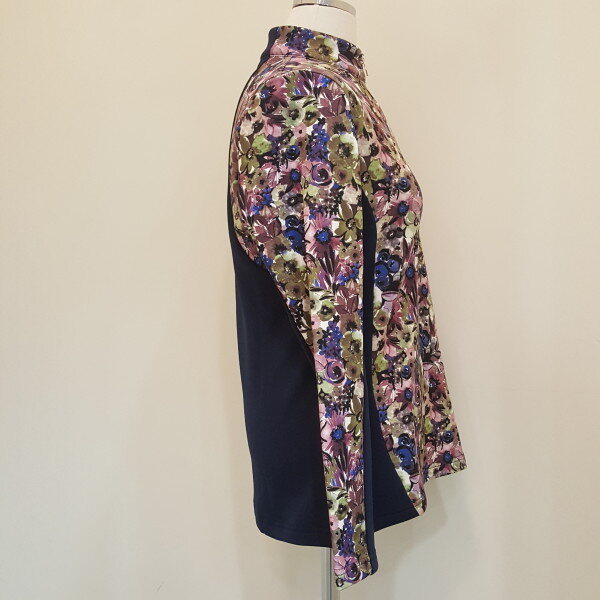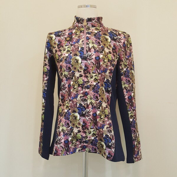 ㅡ써모 파워스트레치 원단에 시즌 트렌드를 반영한 플라워 패턴을 적용한 겨울 티셔츠로 프린세스라인과 등판에 솔리드 원단을 사용하여 슬림해 보이도록 한 제품.ㅡ14K GOLD 컬러의 로고 와펜과,앞지퍼 포인트로 고급스러움을 가미한 스타일 제품.