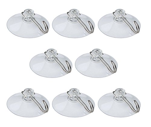 - 8 pcs suction cup hooks for 1 pack. 2.5 inch diameter designed suction cup hanger, can hangs weight up to 8 pounds.