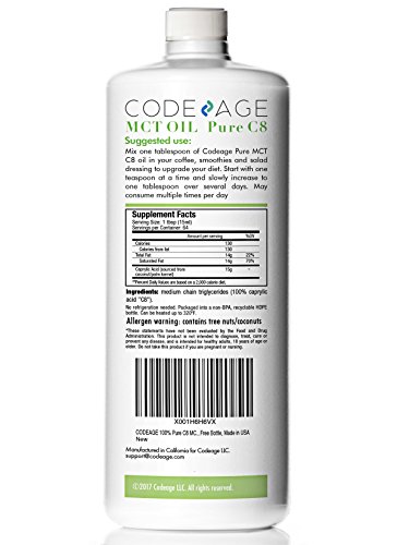 -. Feature : ✅PURE 100% C8 MCT OIL, NOTHING ELSE: Our triple distilled pharmaceutical grade MCT Oil is the most potent MCT Oil available on the market. No fillers, additives, solvents or chemicals and completely flavorless, it contains only the rarest medium chain triglyceride: Caprylic Acid. Third-Party tested, sustainably harvested and Made in a GMP Certified Facility in the USA, it is the cleanest and purest product available! / ✅BOOST ENERGY, ENDURANCE & COGNITIVE PERFORMANCE : Our MCT Oil Pure C8 is instantly converted into sustainable energy for your brain, body and muscles throughout the day without the crash for optimal cognitive and physical performance. Feel more energized than ever, longer than ever and stay active throughout the day. Accomplish more at work, perform better in the gym, reach your true potential! / ✅HELP BURN FAT & ENHANCE DIGESTION: Our MCT's Produce 4x more ketones than other coconut oils getting you into ketosis faster and elevating your ketone levels where your body burns fat as the P.R.Imary source of energy. An effortless way to loose weight while having sustained energy throughout the day! MCT's also have significant antibacterial and antiviral properties promoting gut health by killing bad bacteria while preserving the good for optimal gut, intestinal and digestive health! / ✅RAZOR SHARP MENTAL FOCUS: Caprylic Acid is Pure Brain fuel for Optimal Cognitive Performance. Feel more alert and think clearly throughout the day and unleash that creativity! / ✅NON-GMO, GLUTEN FREE, SOLVENT FREE, VEGAN, PALEO & KETO APPROVED: Perfect for all bulletproof coffees, keto and paleo diets and intermittent fasters. Pair it with ghee butter, smoothie mix or drizzle onto your salads or just take a spoonful and feel the Fuel! Most brands are either a blend of C8 and C10 or C8, C10 and C12. Not this oil! Add to cart and raise your game!