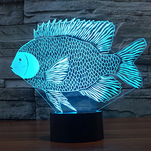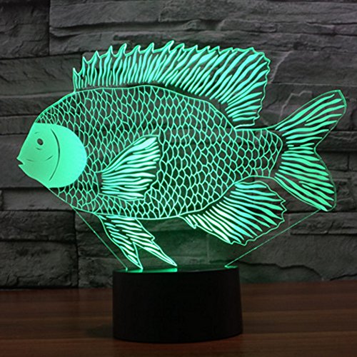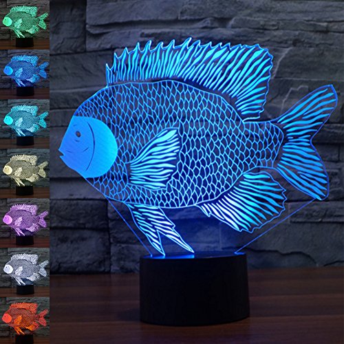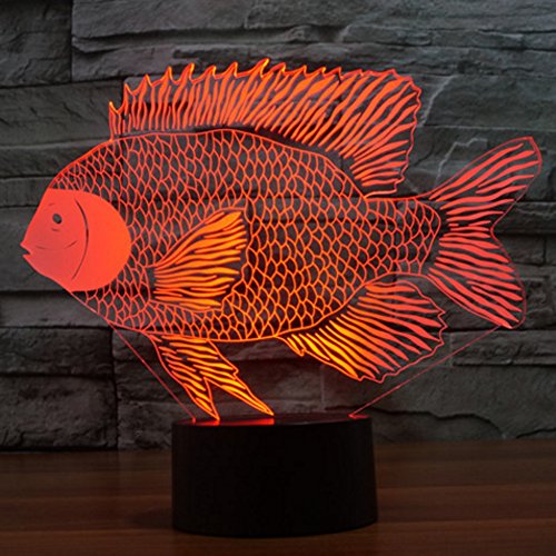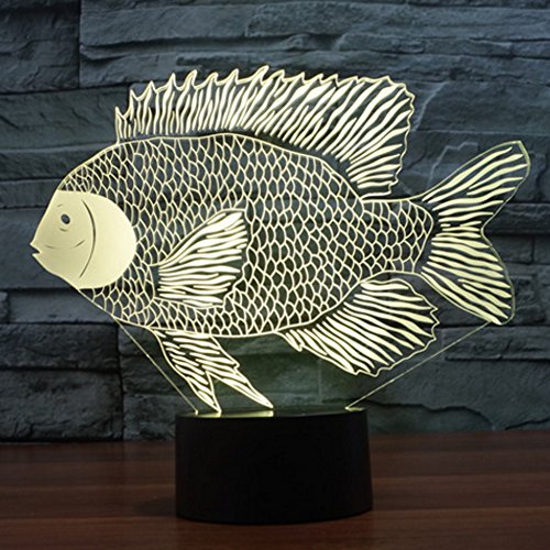 - ❤❤ 3D visual fish creative lamp is an innovative artistic atmosphere light, optical acrylic light guide plate engraving a variety of 2D graphics, 3D visual impact. Unique lighting effects amazing optical visual illusion home decor lamp, It makes your room more interesting.