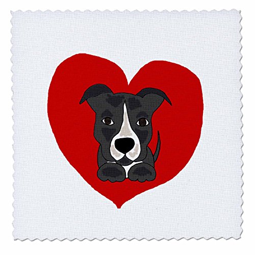 3dRose Fun Grey & White Pitbull Puppy Dog & Red Heart Love - Quilt Square, 10 by 10-Inch (qs_201822_1)