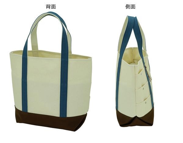 A4ファイルが縦にも横にも入るサイズ!!全体を8号帆布でデザインし軽量化を図りつつ、ハンドルや底部などは4号・6号帆布で補強したトートバッグです。沢山のポケットを付けることで散らばりがちな小物もきちんと整理可能♪毎日の通勤、通学にちょうど良いサイズのトートバッグです。 |