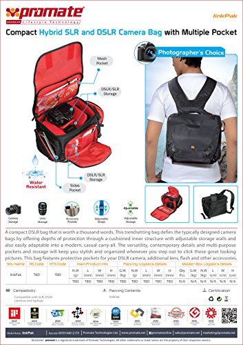 -. Title : Promate プロメイト 小型ハイブリッド一眼レフカメラ用バッグ マルチポケット カスタマイズ可能インナーポケット ブラック linkPak