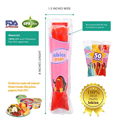 Popsicle Molds 50 Bags, BPA Free, with Zip seals, includes a Slicone folding Funnel by Lebice