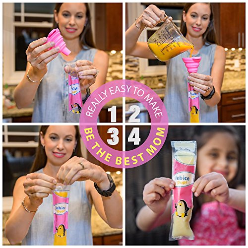 HIGHEST QUALITY POPSICLE BAGS! This ice pop tubes comes with a free FOLDING FUNNEL to avoid the mess, and a ice pop recipes E-Book.
