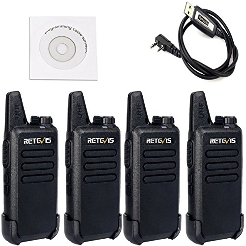 Retevis RT22 Walkie Talkies Rechargeable UHF 400-480MHz 16 CH CTCSS/DCS VOX Two Way Radio(4 Pack) and Programming Cable