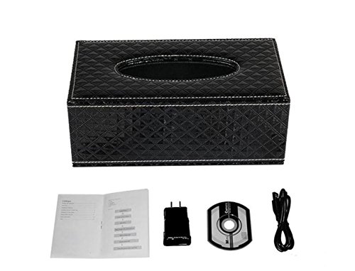 -. Feature : It looks like a normal tissue box, isn't it? But it is far more than that. The H.264 1080P WiFi /IP P2P Tissue Box Mini Camera 2000MAh Battery DVR for Remote Monitoring is your eyes. It can record video with the resolution of 1080P/720P/480P / No one can take notice of this device. It is mainly designed for recording videos, taking pictures and shooting pictures. Its 2000 MAh capacity battery is rechargeable and once fully recharged, it can work even while charging. And more, it's sound recording range is around 5 square meter. / It has a view angle of 90 degrees and supports maximum 32GB external memory card (card not included). / Comes with a USB cable that plugs into a power adapter. / his Tissue BOX unit makes a great Nanny camera, perfect for home surveillance, theft prevention, and countless other uses. The camera is powered by the built in 2000mAh battery (2 hours of record time). Can also record while charging.