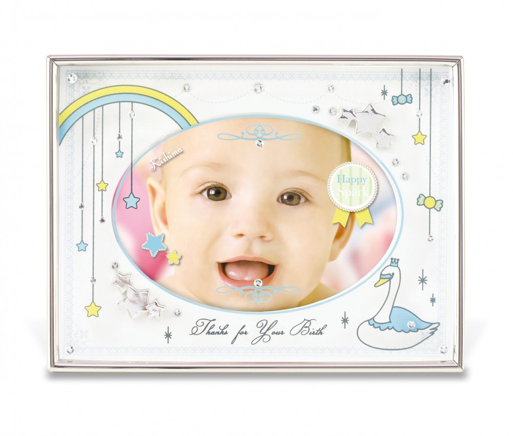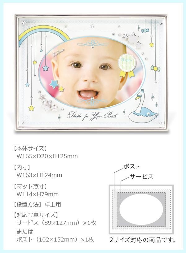 | 輝く3つ星とレースプリントがポイントの台紙と、甘いお菓子を散りばめたようなキュートなプリントのガラスが2層に重なり、中の写真を上品に彩ります。クラウンをつけたスワン、大きな虹、キャンディなど、夢がいっぱいのキラキラ楽しいフォトフレームです。 |