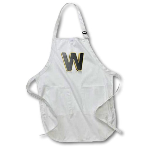 3dRose Monogram Letter W In Golden Metal with Perforated Front in Gray - Full Length Apron, 22 by 30-Inch, White, with Pockets (apr_158009_1)