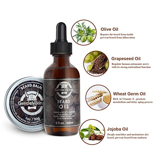 - NATURAL & ORGANIC INGREDIENTS (Formulated in USA): Rich in sweet almond oil (smoothing & refreshing), jojoba oil (moisturizing & nourishing), hemp seed oil (prevent splitting & dryness)and vitamin E, GENTLE VIKINGS beard kit meticulously caresses your beard hair. You’ll enjoy your healthy beard.