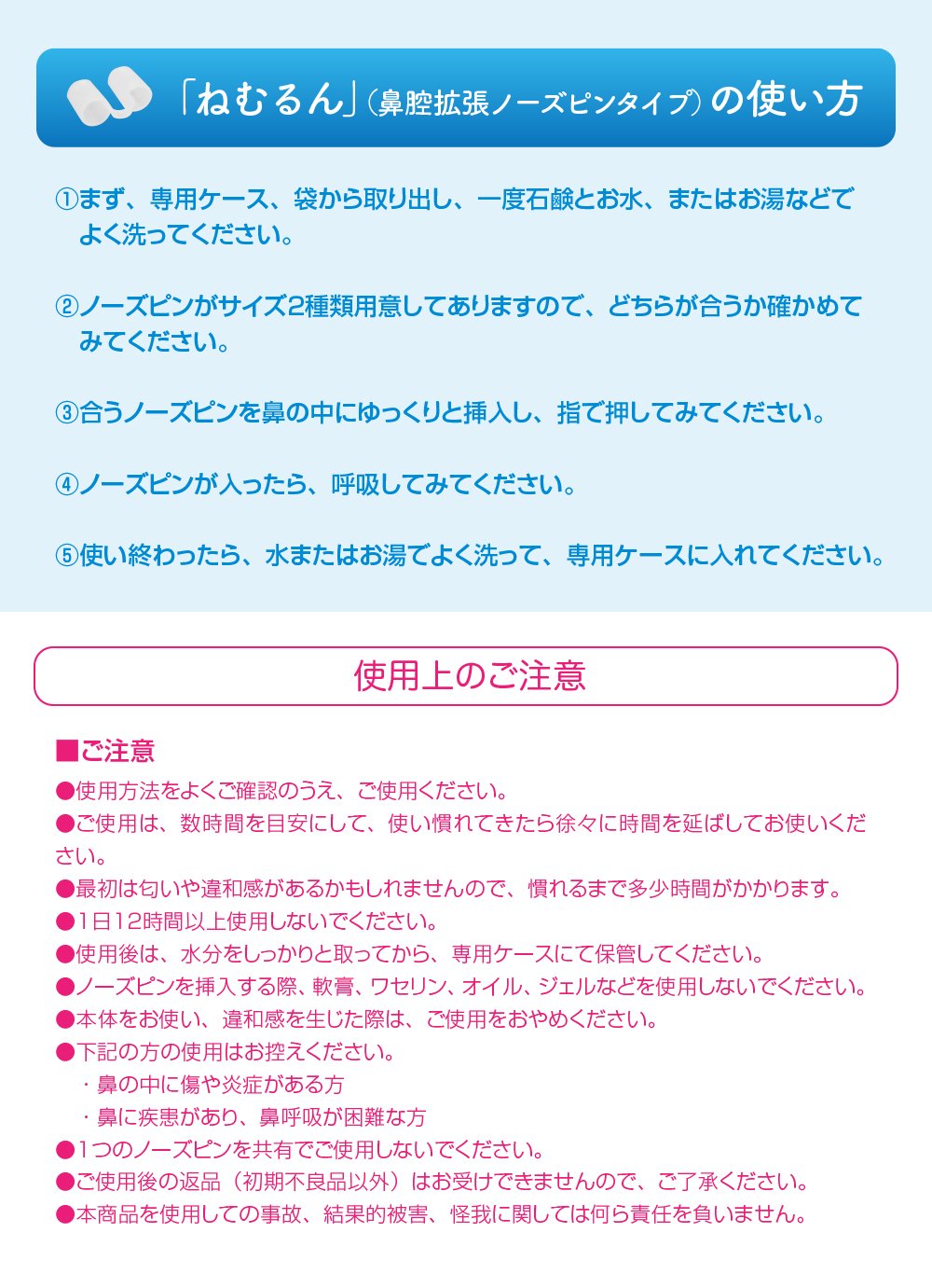 ● When inserting the nose pin, please do not use ointment, petrolatum, oil, gel etc.
