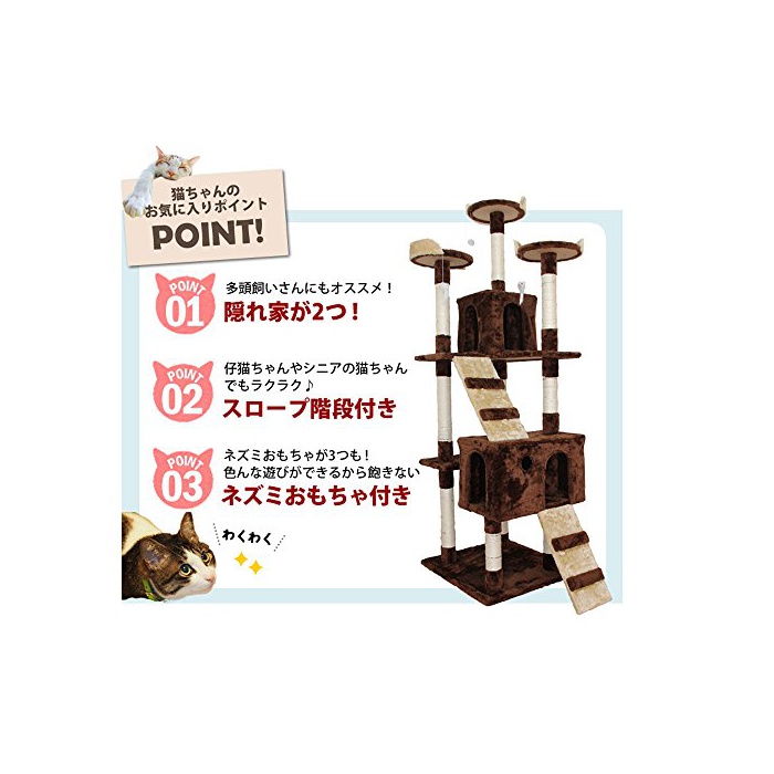 캣 타워 보류 타입전 고190cm 애완동물 용품1192브라운B백 마고양이 시선의 안전 설계광~있어 은신처,놀이승,10개소의 손톱과 # 부고양이 타워