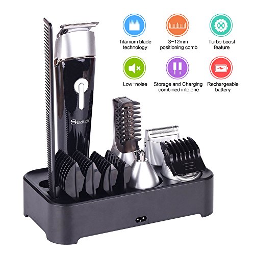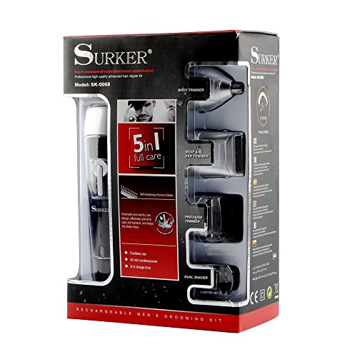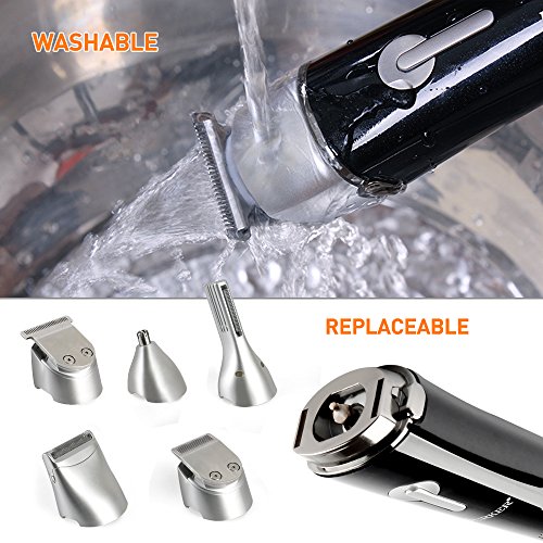 - 5 in 1 Multi-functional Man’s Grooming Kit equipped with 5 Different Attachments Heads,including a hair clipper, hair trimmer, nose & ear trimmer, dual shaver and body trimmer.let you achieve your best grooming style and authentic look.