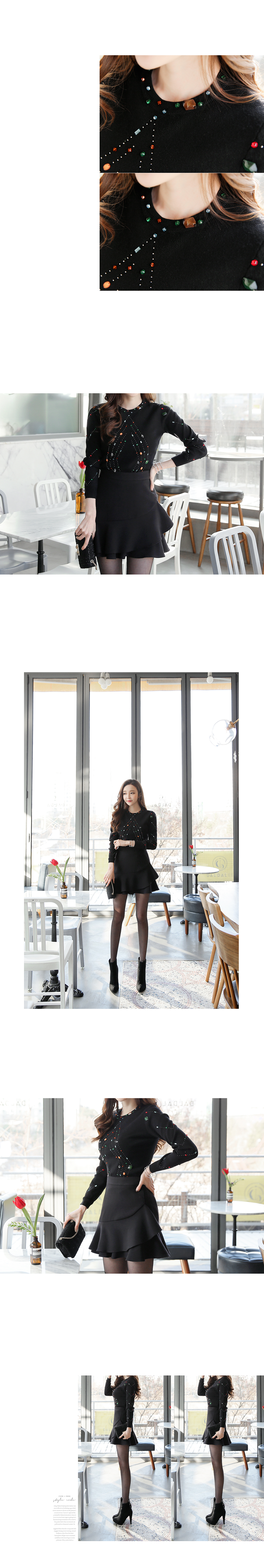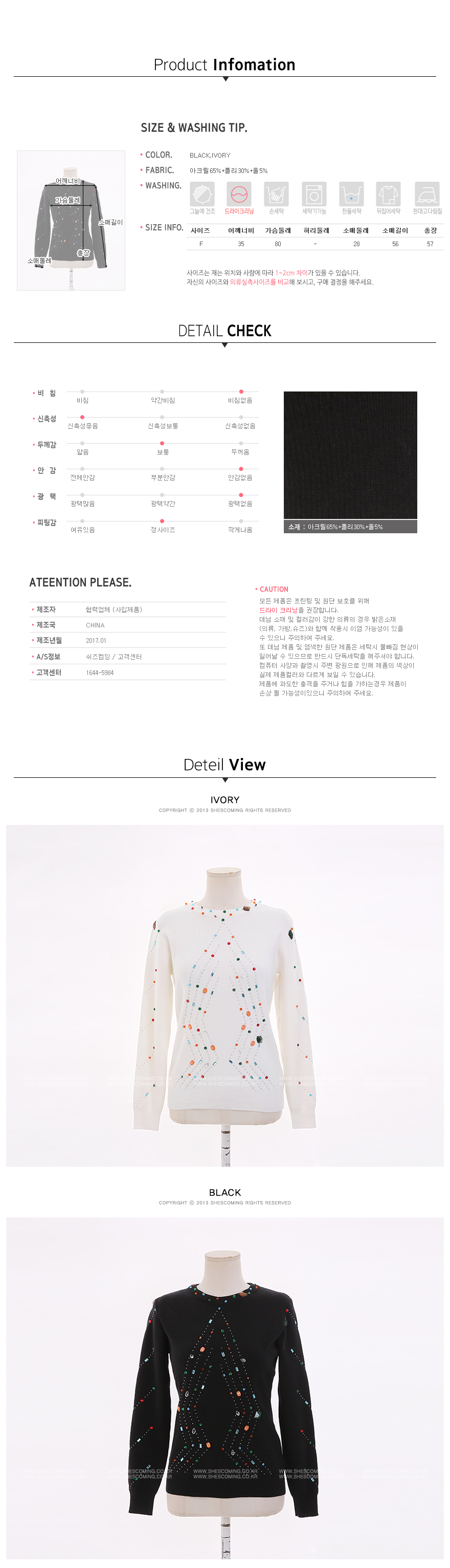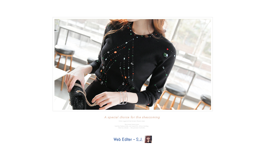 베이직한 라운드 니트에 큐빅 포인트로 화려한