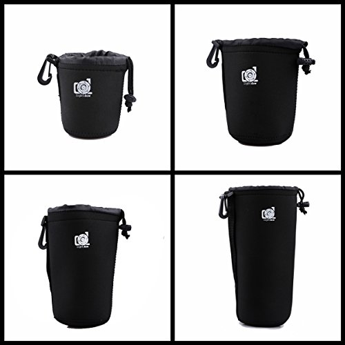 LightDow Medium Lens Pouch 5mm Thick Neoprene Bag For Canon EF 24-105mm f/4L IS / 24-70mm f/2.8L II Nikon AF-S DX 18-200mm f/3.5-5.6G ED VR II / 24-120mm f/4G ED VR / 18-105mm f/3.5-5.6G Etc (Size=M)