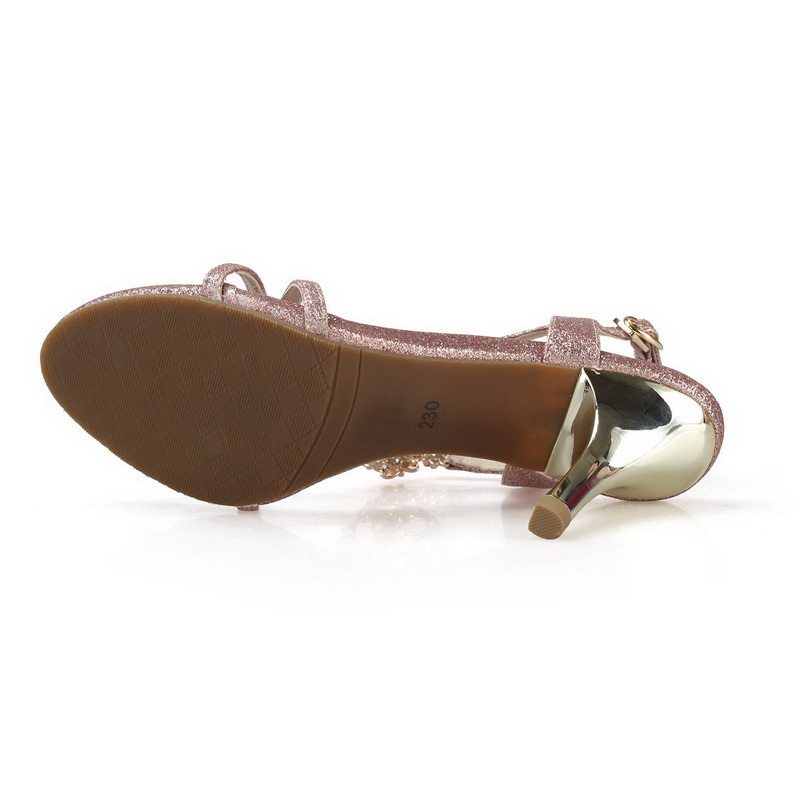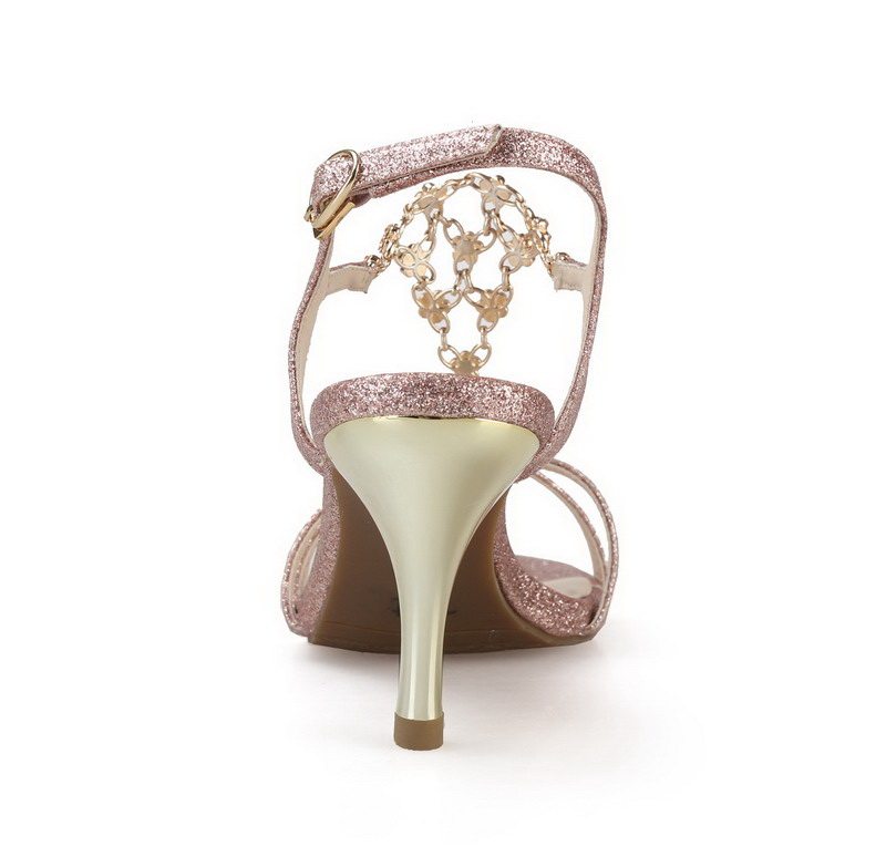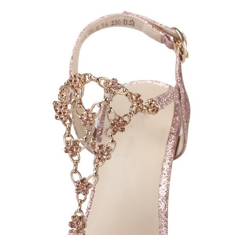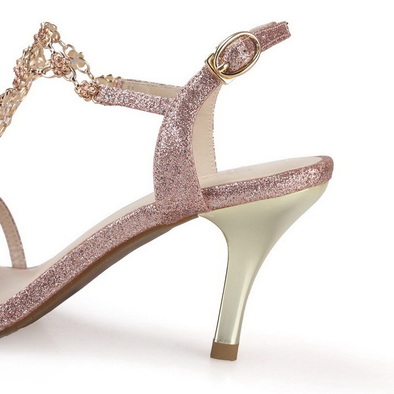 壹 百丽妃女夏高跟女凉鞋细跟性感显瘦水钻链女凉鞋中跟