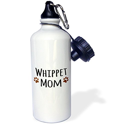 3dRose wb_154217_1 "Whippet Dog Mom-Doggie by breed-muddy brown paw prints-doggy lover-proud pet owner mama love" Sports Water Bottle, 21 oz, White