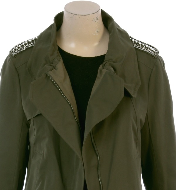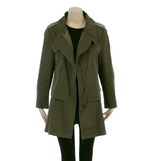 SATIN, 어깨부분에 비딩 장식으로 포인트를주어 세련스러운 멋을 연출하는 트렌치코트입니다