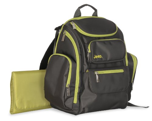 Jeep perfect pockets back pack diaper bag combines ultimate organization with clean, handsome styling. 12 pockets make for storage heaven when on the go with baby. Stash pacifiers, creams, keys, and diapers in the small zippered pockets throughout the bag, and larger items like toys, and clothes in the spacious main compartment. Bottles stay fresh in the insulated side pocket. This jeep diaper bag features a hard wipes case with easy pop open feature for quick access to baby wipes. Choose between 2 hands free carrying options, padded shoulder straps or stroller loops. Padded back panel for added comfort.