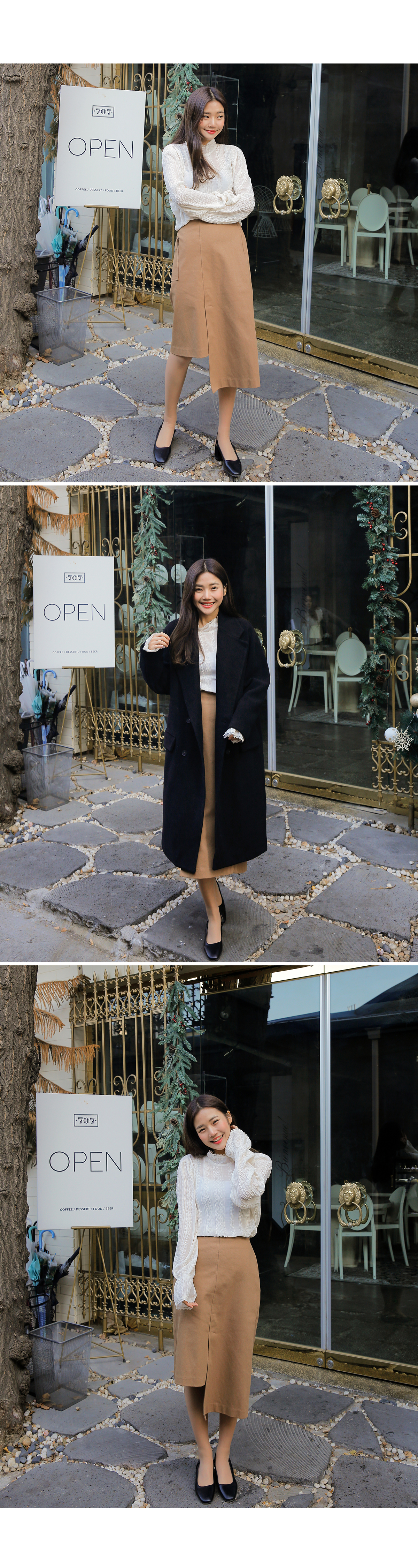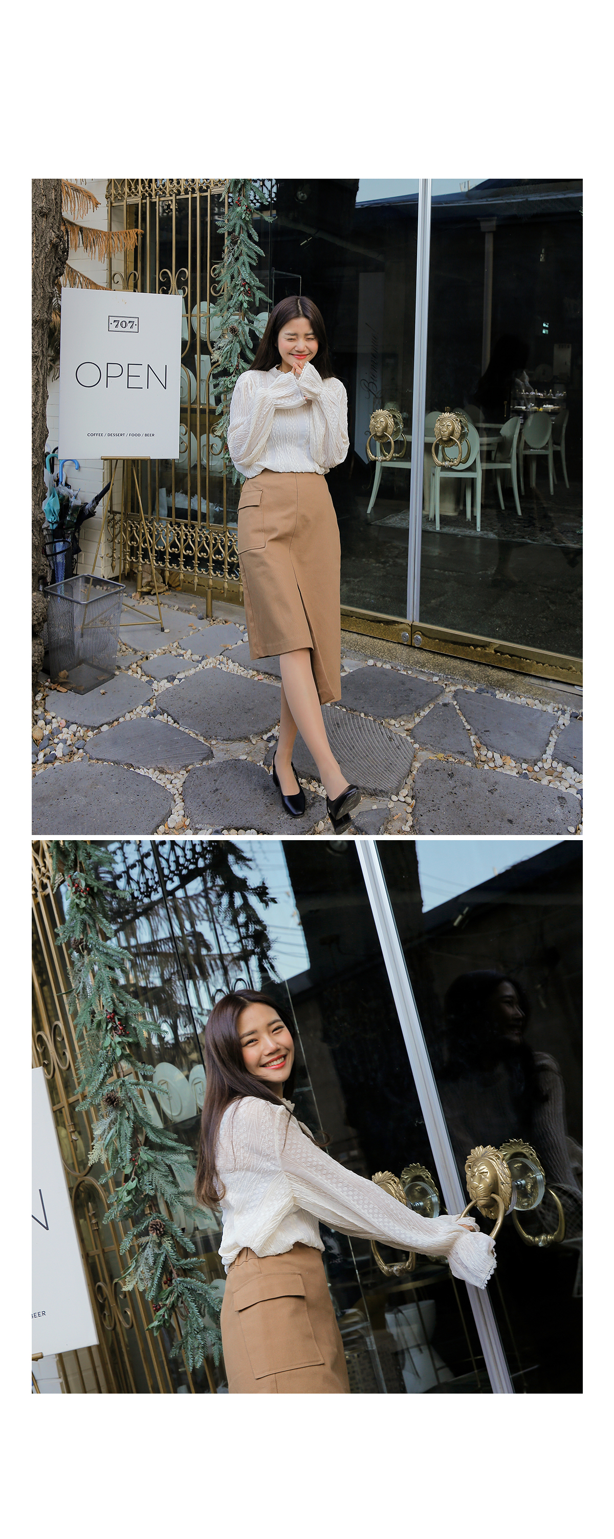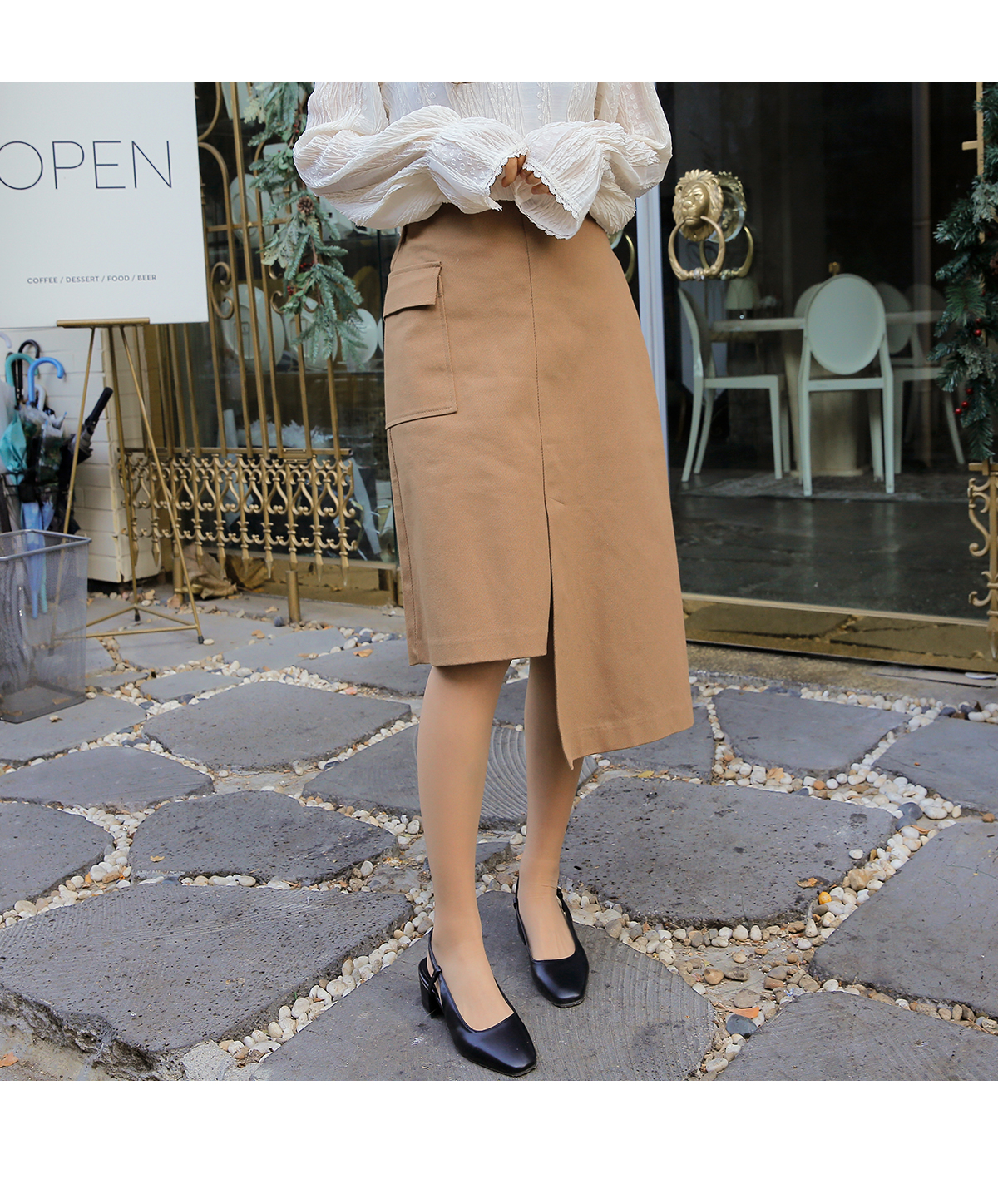 ![]() "언발 포켓 스커트" COMMENT 유니크한 느낌의 자체제작 언발스커트를 소개할게요! 가운데 봉제선을 기준으로 양쪽 기장이 다른 스커트인데요! 탄탄한 소재의 언발기장과 가운데 봉제선 밑단부분에는 트임이 들어가 있어 활동성도 좋아요:) 오른쪽 사이드에는 덮개주머니 디테일이 들어가 있어 더 유니크한 느낌이 들어요! 왼쪽 사이드에는 오픈클로징 지퍼가 있어 편한 탈착용을 도와주며 허리에는 뒷밴딩이 들어가 더욱 편하게 착용하실 수 있어요:D COLOR 베이지(beige),레드브라운(red brown) FABRIC 면96% 폴리우레탄4% / 안감: 폴리에스텔100% SIZE TIP 허리32 힙43.5 밑단단면54.5 짧은총장51.5 긴총장75.5 트임길이18.5 프리사이즈로 44~마른66 고객님께 잘 맞으실 것 같아요. 트위 모델(키:162)이 착용했을 때 무릎을 덮어주는 기장감이였어요. (재는 위치 및 재봉과정에 따라 오차가 있을 수 있습니다) *모든의류의 첫 세탁은 드라이크리닝 또는 찬물 손세탁을 해주시는게 좋아요* ![]() ![]() ![]() ![]() ![]() ![]() ![]() ![]() |