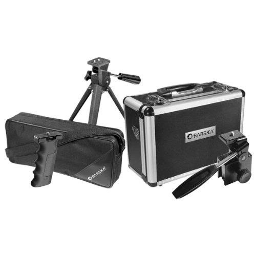 100-percent waterproof and fogproof; tabletop tripod with handheld mount