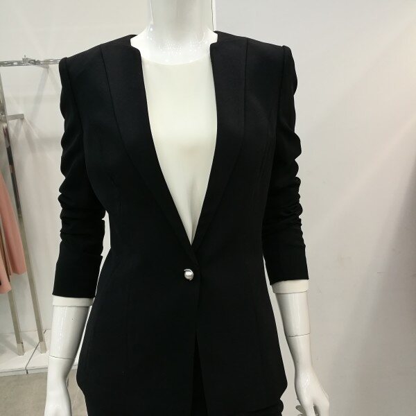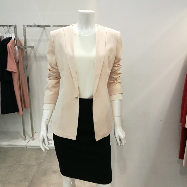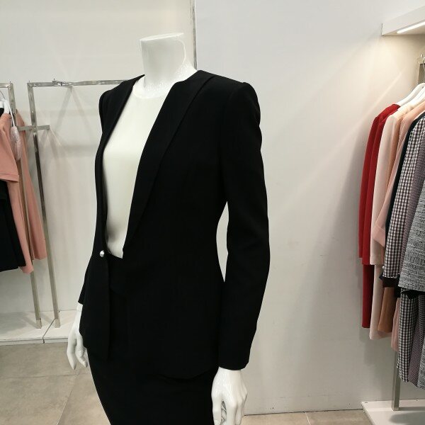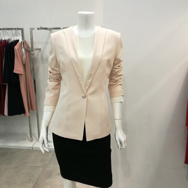 심플하고 슬림한 자켓으로 날씬해보이고 가벼우며 세련되었다.스커트랑 셋트로 나와 한벌로 입으면 고급스럽다.