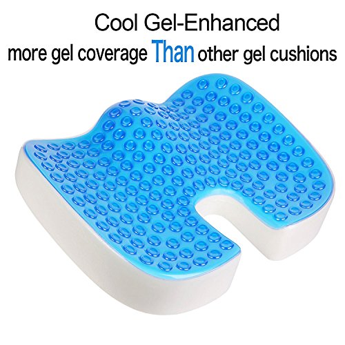 Studio : Hanshi Publisher : Hanshi Binding : Kitchen Product Description Cool Gel-Enhanced Coccyx Seat Cushion ●Gel by high-tech scientific formula once forming, and the perfect combination of memory form,so the chair cushion soft and comfortable, good resilience, can effectively buffer the human body pressure . ●Granular gel design with breathable trough, vent structure, with a good permeability, balanced dispersion of human calories . ●The pressure relief combined with cooling gel layer alleviates discomfort better than other chair pads and is particularly suitable for reduction of pain from irritation of the sciatic nerve ,spondylolisthesis,degenerated discs,hemorrhoids and pressure sores.