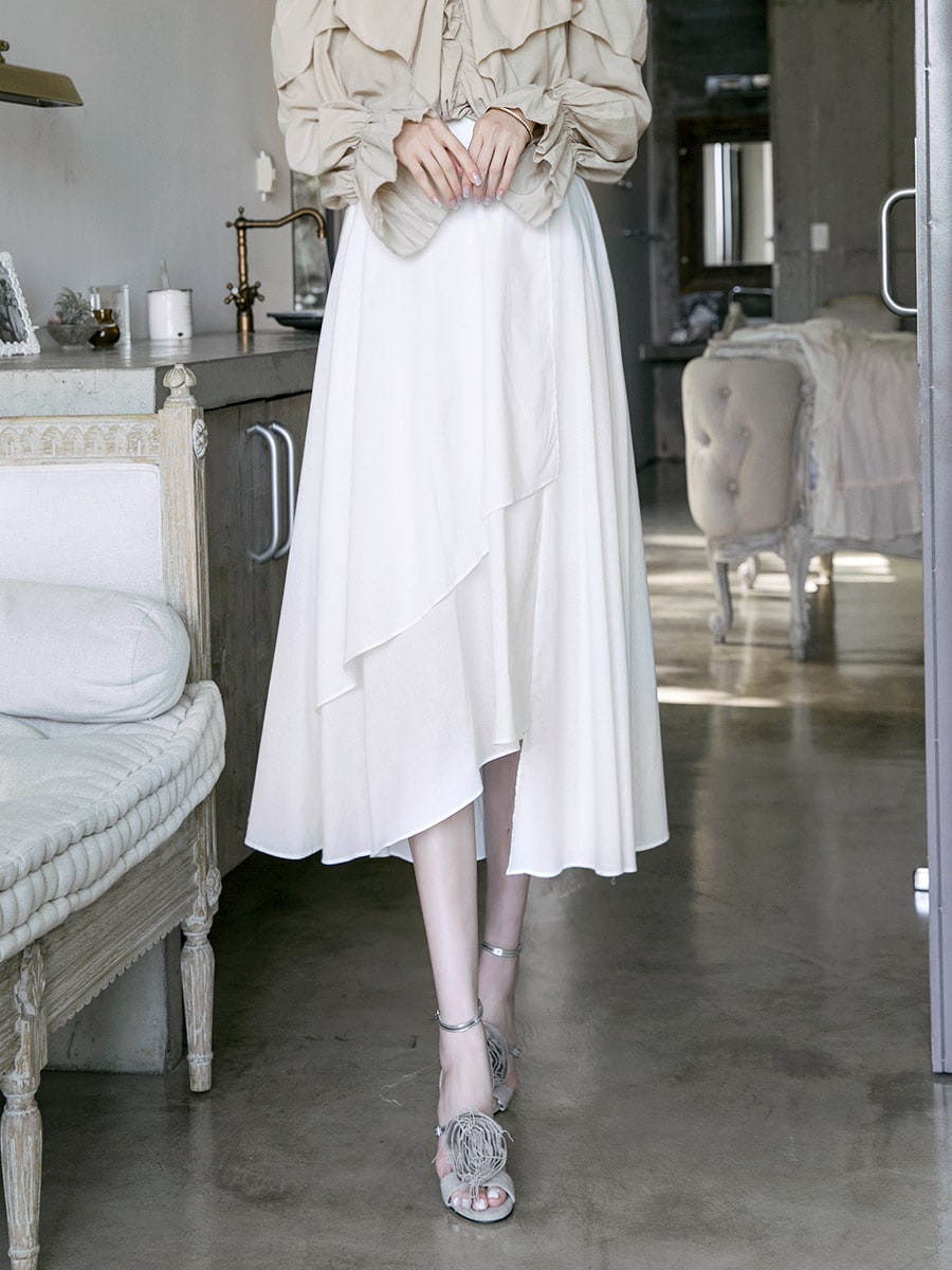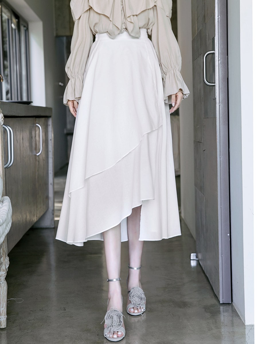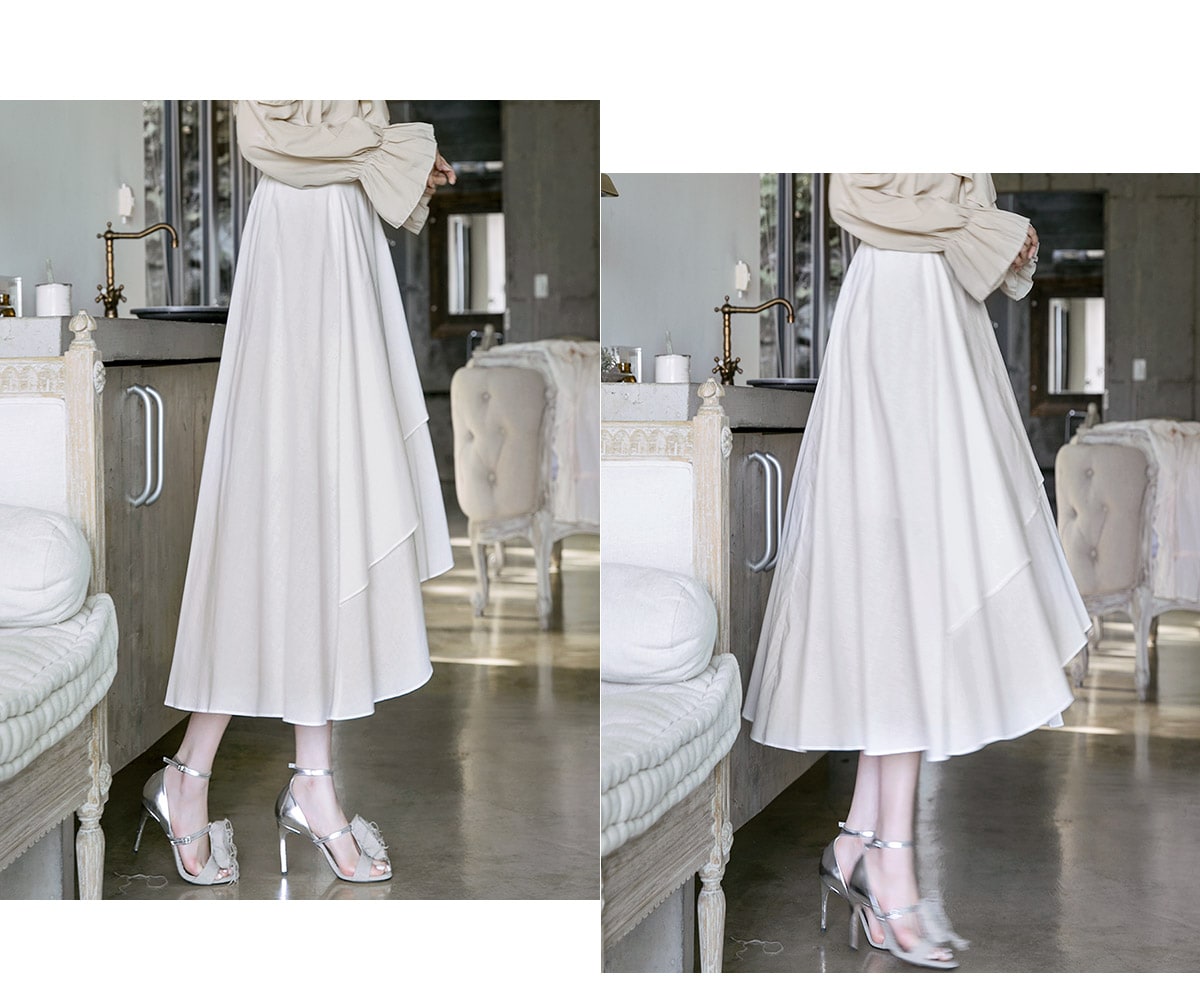 SK1715 블루밍 언발런스 롱 스커트 Ivory