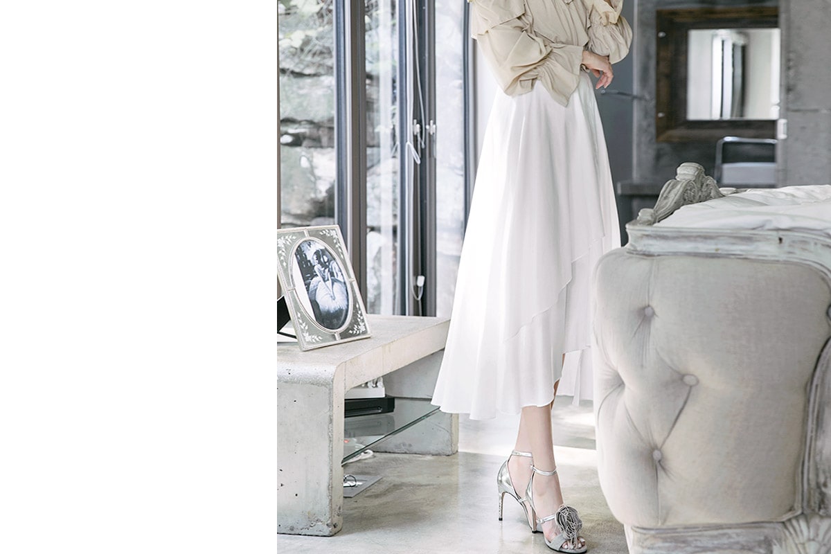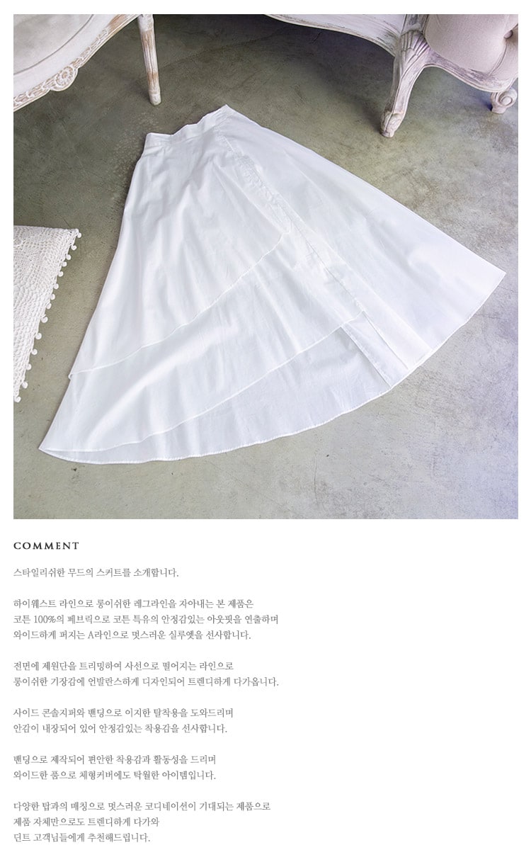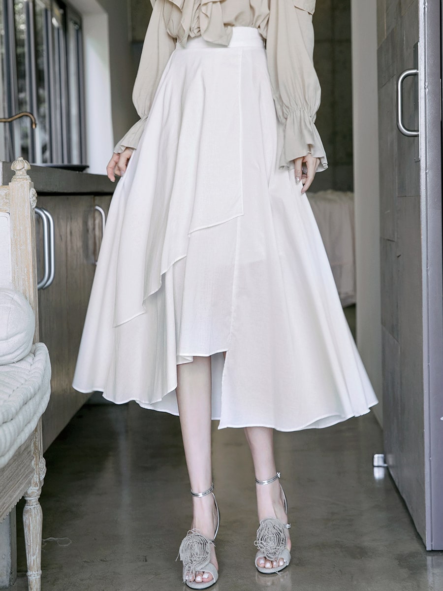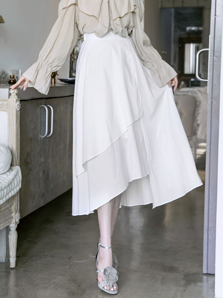 SK1715 블루밍 언발런스 롱 스커트 Ivory