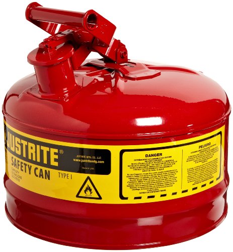 Justrite 7125100 2 Gallon, 11.75" OD x 11.50" H Galvanized Steel Type I Red Safety Can