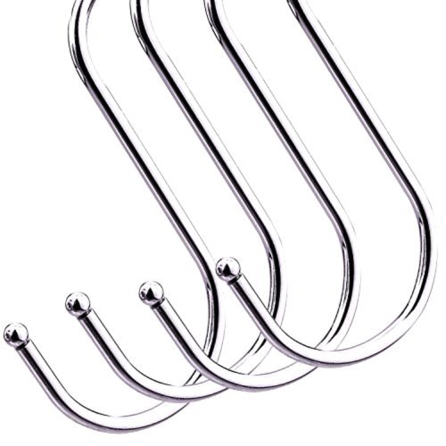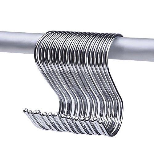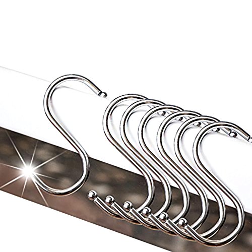 Pack of 10pcs Round S Shaped Hanger Heavy Duty Chrome Finish Stainless Steel Metal Hanging Hooks Kitchen Hangers For Towels Hanging Pans Pots Bags (Silver)