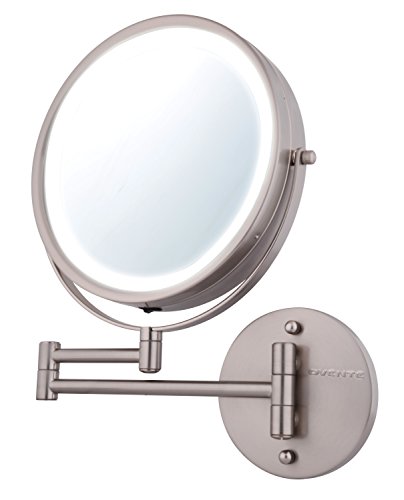 Ovente Wall Mount Makeup Mirror, Battery Operated LED Lighted, 1x/10x Magnification, 8.5 inch, Nickel Brushed (MFW85BR1x10x)