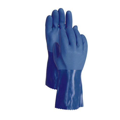 - Tough nitrile coating resists chemicals, solvents, caustics, oil, and grease