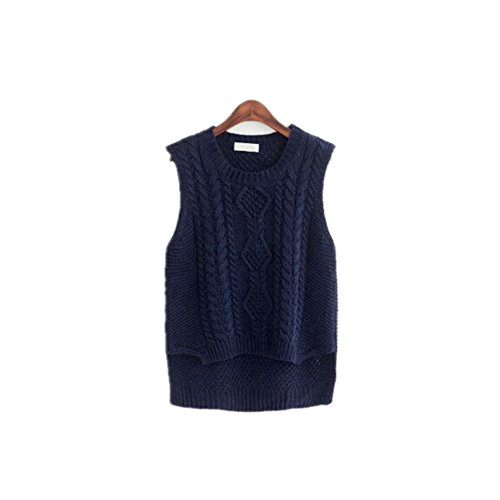 -. Title : ニットベスト レディース ベスト ルーズニットベスト ケーブル編み ラウンドネック スクールニット 女の子 体型カバー シンプル 重ね着に ゆったり シルエット カジュアル 秋 冬 (ネイビー)