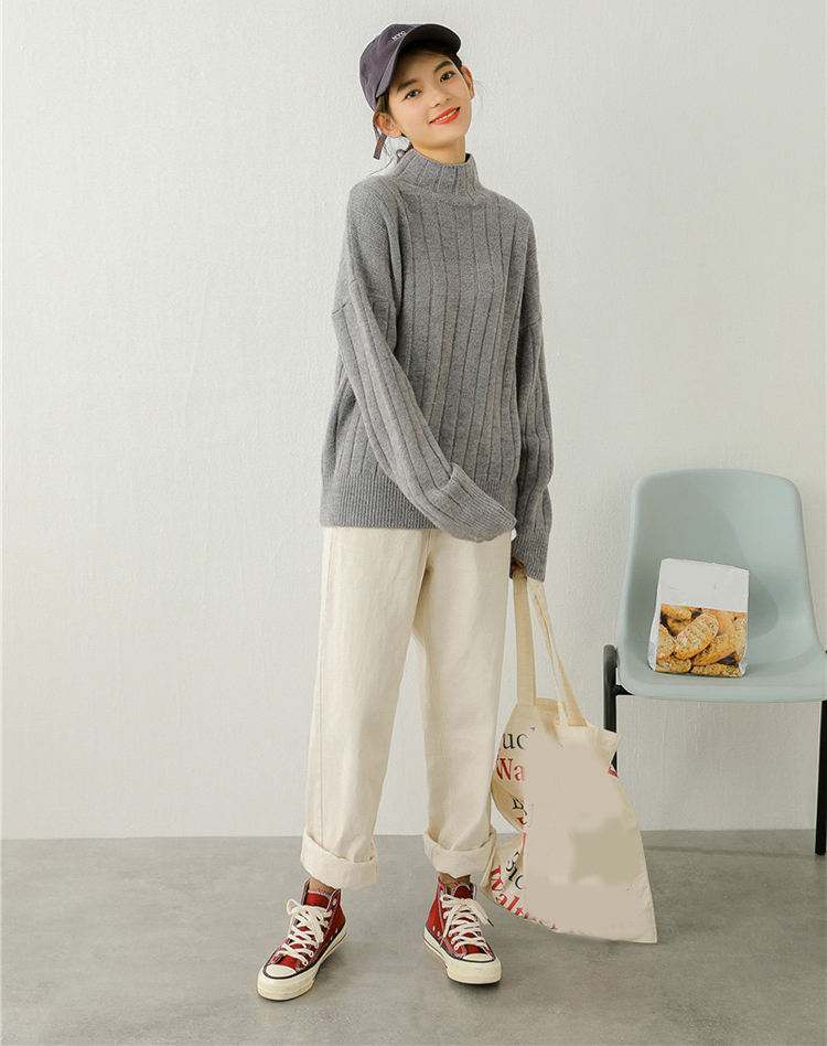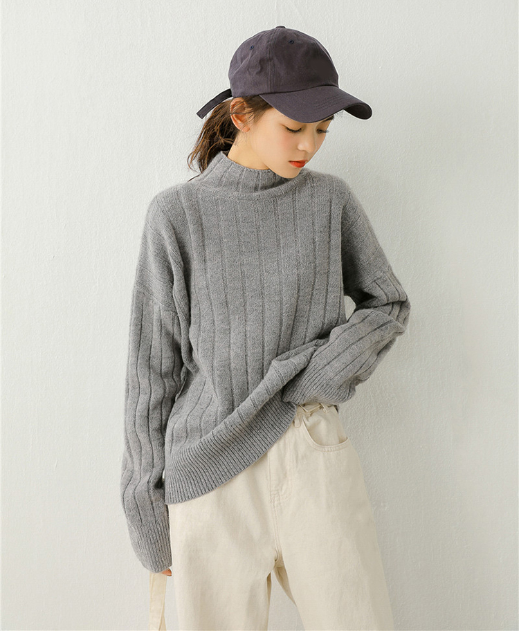 シンプルデザインで、デイリーに着回せるニットトップスです。