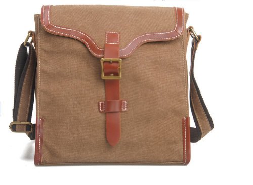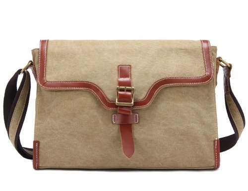 - Feature : Made by high quality canvas and genuine leather / Thicken double Shoulder straps which is adjustable with a buckle, antique finish brass metal buckles / Interior zip, wall and cell phone pockets and One exterior Back zipper pocket & quick snap buckles / You can take Tablet PC, A4 magazine, portable textbooks, clothing, wallet, phone to Cool Good Finish Shoulder Bag / This fashion looking shoulder bag is perfect for up to 14" Laptop. Fits most occasions like school, office, casual