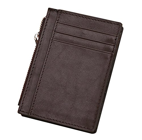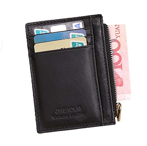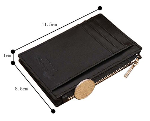 -. Feature : Size:4.53inch*0.39inch*3.35inch / Material:genuine leather / 6 Card slots,1 zipper change pocket / Slim & Minimalist Design / Perfect front pocket wallet for men