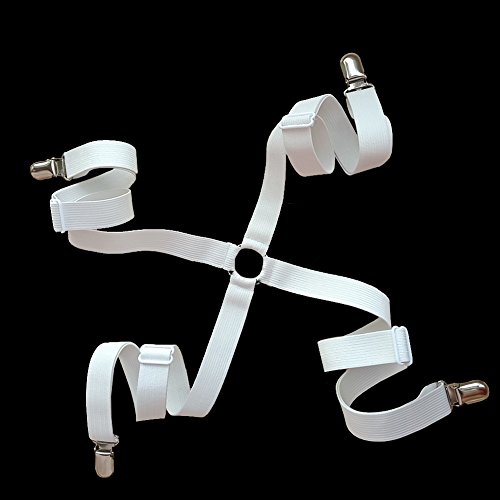 Toweter Adjustable Crisscross Bed Sheet Straps Suspenders,Under Mattress Bed Fitted Sheet Fastener(White)