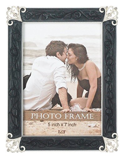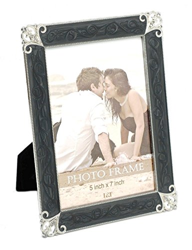 L&T Vintage Metal Picture Frame Silver with Black Swirl Enamel and Crystals 5 x 7 Inch